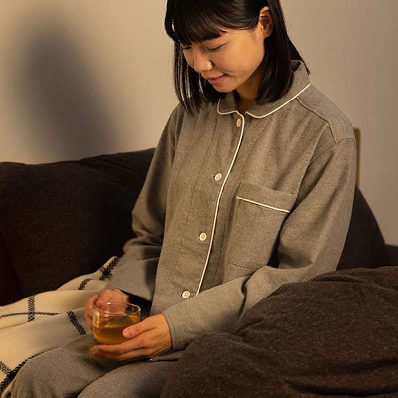 男女有機棉無側縫法蘭絨家居睡衣,1,490元:講究穿著時的舒適度,採用無側縫設計製成。並施以起毛加工,提升穿著舒適度及溫暖感。使用有機棉製成。