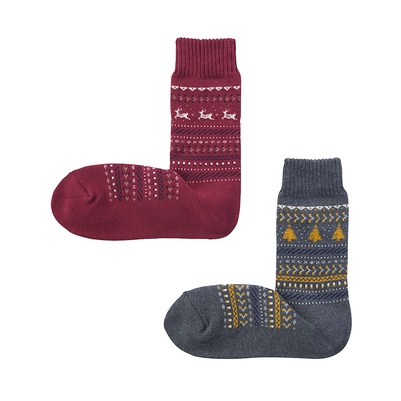 男女棉混厚織圈絨室內直角襪二雙組,350元:不同花色的2雙組合,具有厚度感的圈絨素材。使用有機棉製成。