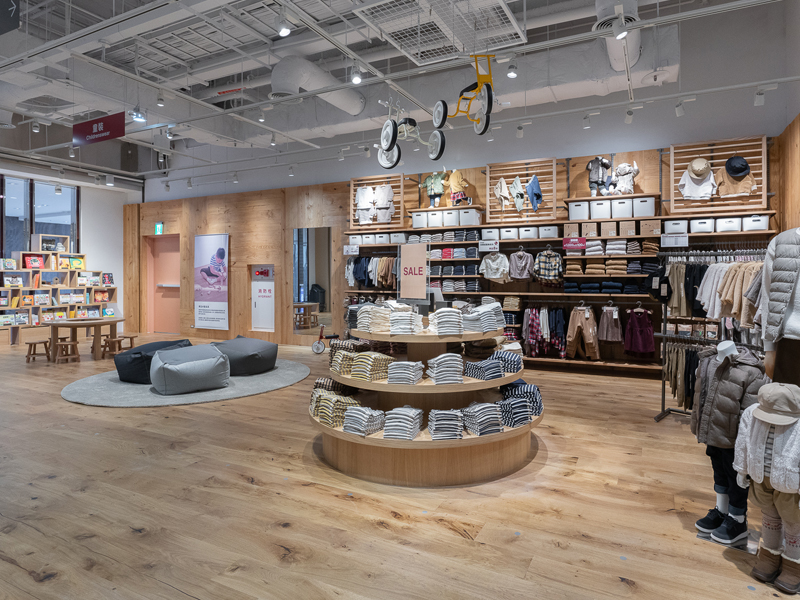 為提供親子購物時的友善環境,南紡門市特別規劃18坪空間,除了販售童裝外,更攜手「木匠的家」關懷協會,將廢棄回收的課桌椅,製作成木製玩具,透過手工裁切、磨圓,保留木材質樸樣貌,提供兒童體驗溫潤手感的遊具。讓家長與孩童都能享受自在的遊逛時光,更從中與MUJI無印良品共享惜物愛物的心意。