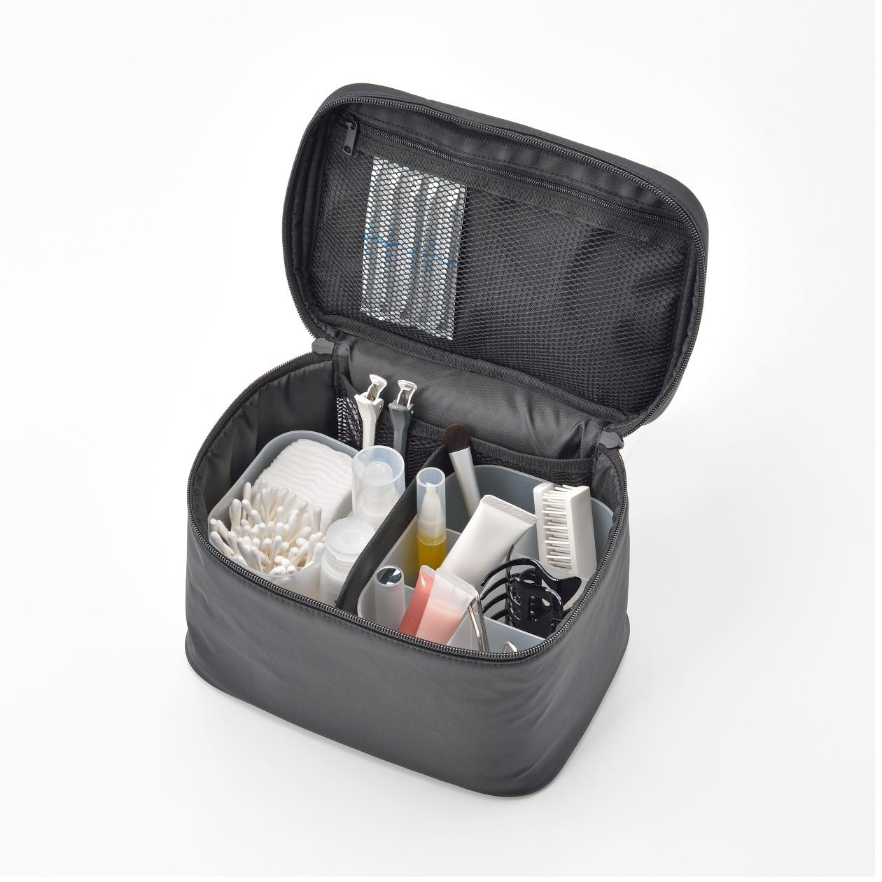針對外出時需要攜帶保養品及化妝品等瓶瓶罐罐的顧客,MUJI無印良品提供尼龍刷具包、手提化妝包及化妝箱等收納道具,方便顧客可依據需求及使用習慣作挑選,即日起-2/3(三),購買尼龍收納包、化妝箱享8折優惠。