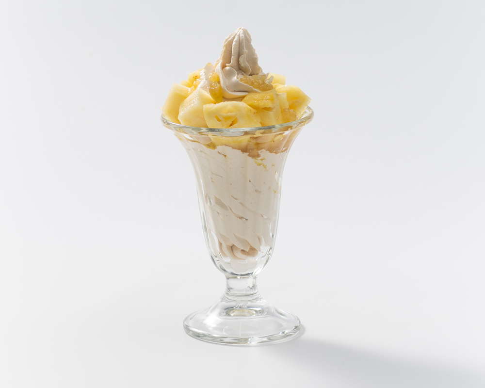 以單一乳源鮮乳與沖繩產本和香糖製成的霜淇淋,加上嚴選台灣鳳梨,品嘗純粹的美味。