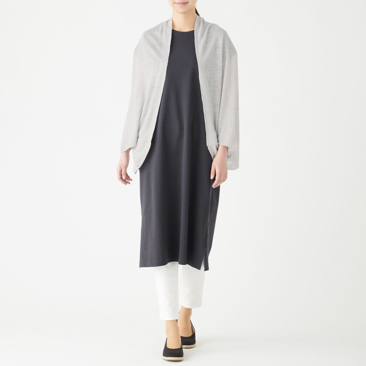 法國亞麻短外套式披肩,1,290元:使用纖維間飽含空氣的法國亞麻織線織製成輕巧、略帶透視感的披肩。可外披或纏繞在身上使用,搭配方式更加多元。