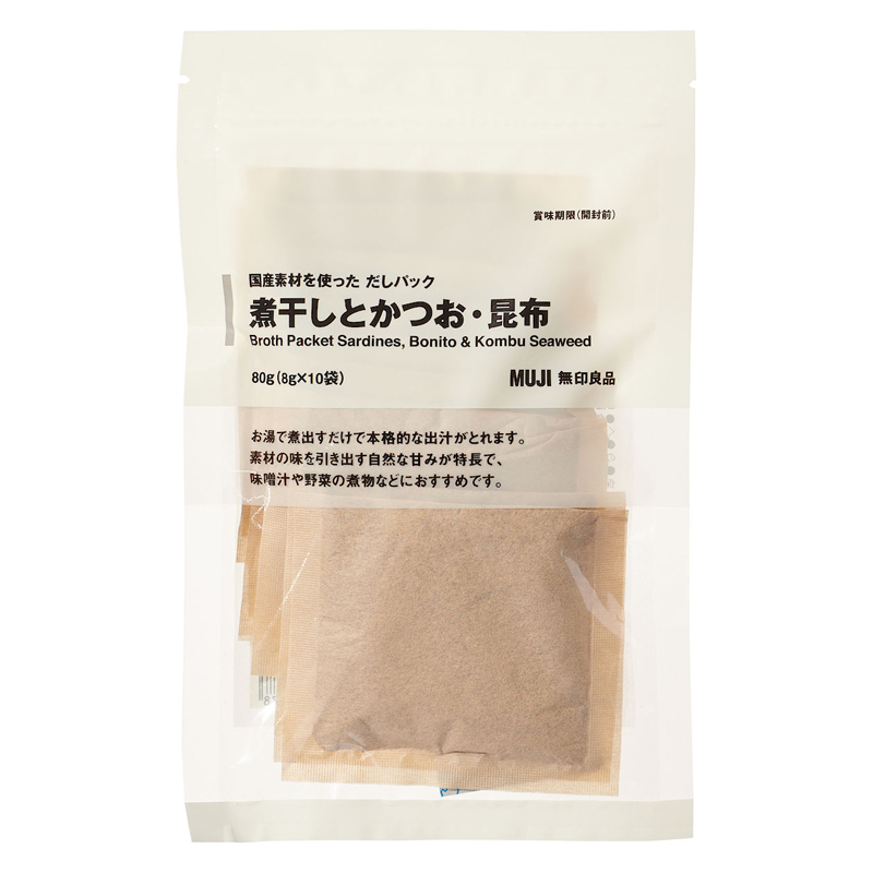 飲食是生活的基本,MUJI無印良品考量現代人的生活習慣,特別販售可提升蔬菜攝取量的調味醬系列、產自日本沖繩的甘蔗所製成的本和香糖及不添加胺基酸,強調天然釀造的日產丸大豆醬油系列等皆強調成分簡單、協助提升食材本身的美味。尤其近日天氣濕冷,MUJI無印良品推薦將高湯食材直接磨碎後,再分裝成包的日產高湯包系列,只要以熱水烹煮,就能輕鬆享用無添加化學調味料或酵素萃取物的美味日式高湯,暖胃更暖身。