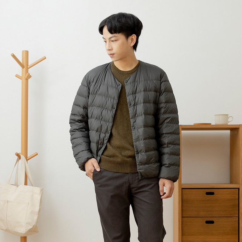男輕量澳洲羽絨可攜式無領外套