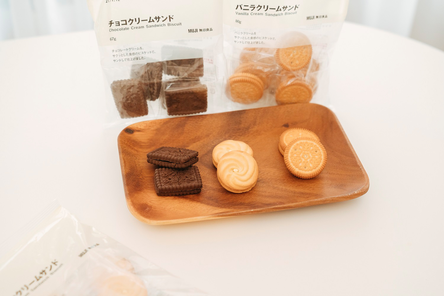 除了可愛的圖案令孩童愛不釋手,美味的零食點心也能與孩童共度歡樂時光,MUJI無印良品的一口夾心酥與夾心餅乾系列提供多款風味,滿足冬季容易嘴饞的食慾。