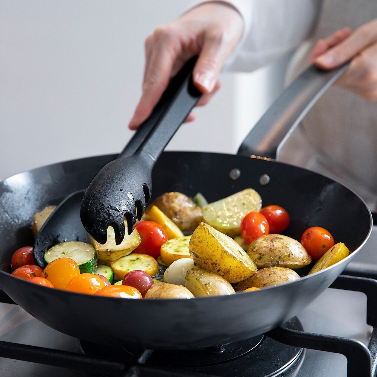 前端使用矽膠材質,不傷鍋具。把手使用質地輕盈的尼龍樹脂。