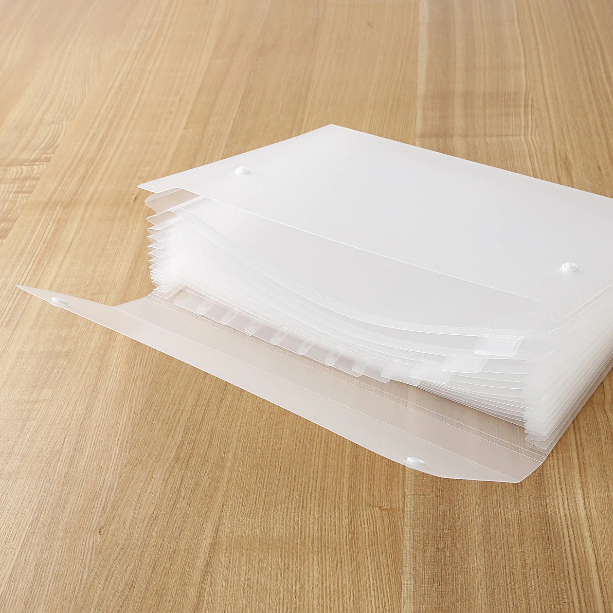 不添加顏料,無色。內部採手風琴式的分隔設計,易分類、好拿取。