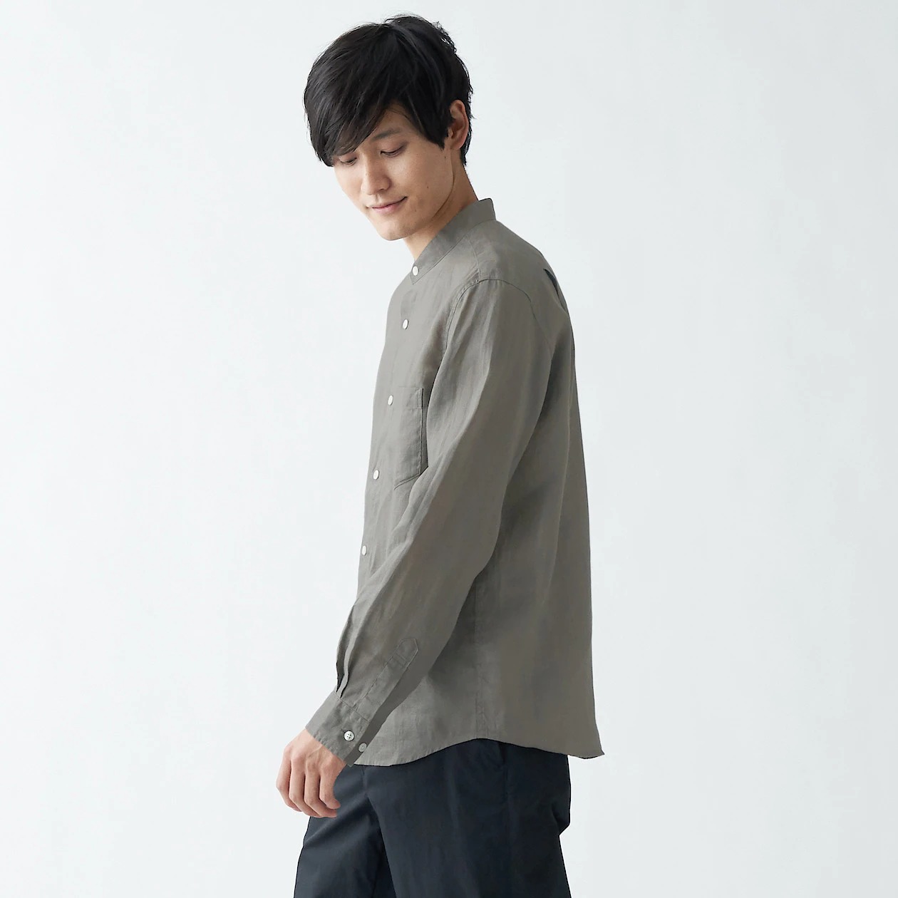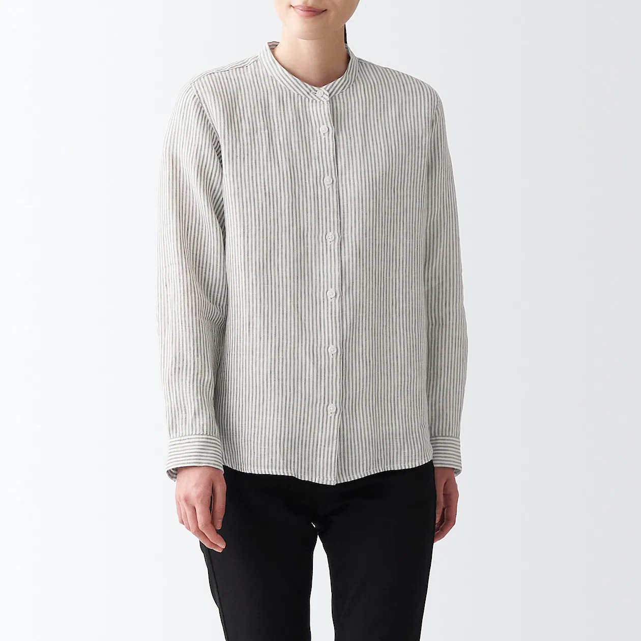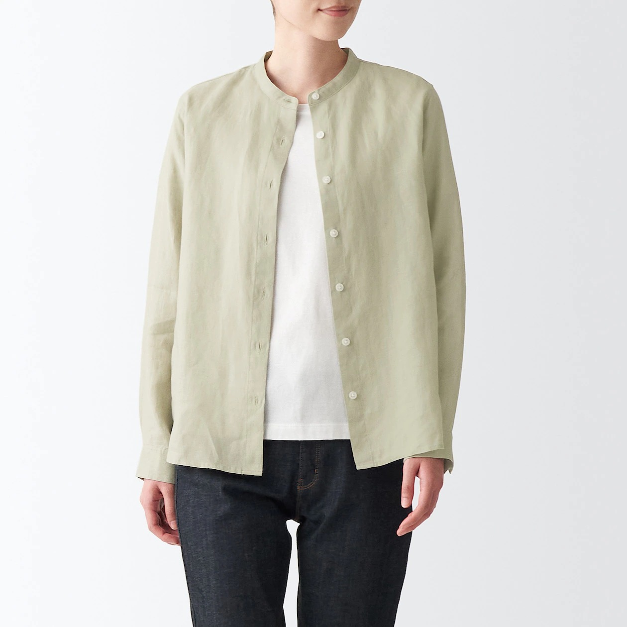 ②女有機亞麻水洗立領襯衫 (預計4月上市)