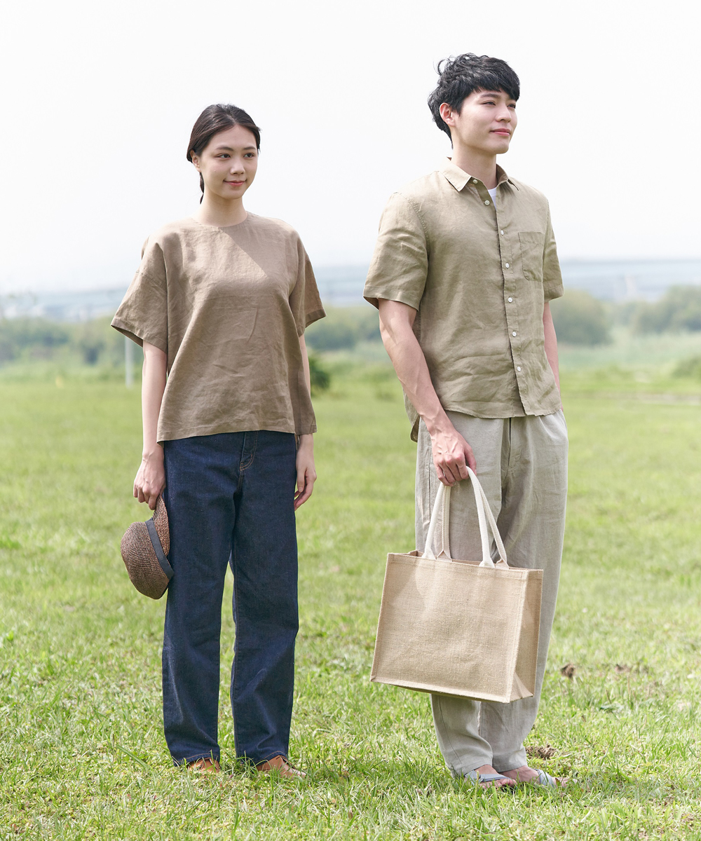 在上衣推薦上,男法國亞麻水洗襯衫不論單穿或作為薄外套遮陽,都能讓整體造型更出色;女有機亞麻水洗七分袖套衫則具備俐落版型與適中長度,不論搭配褲裝或裙裝都十分合適。