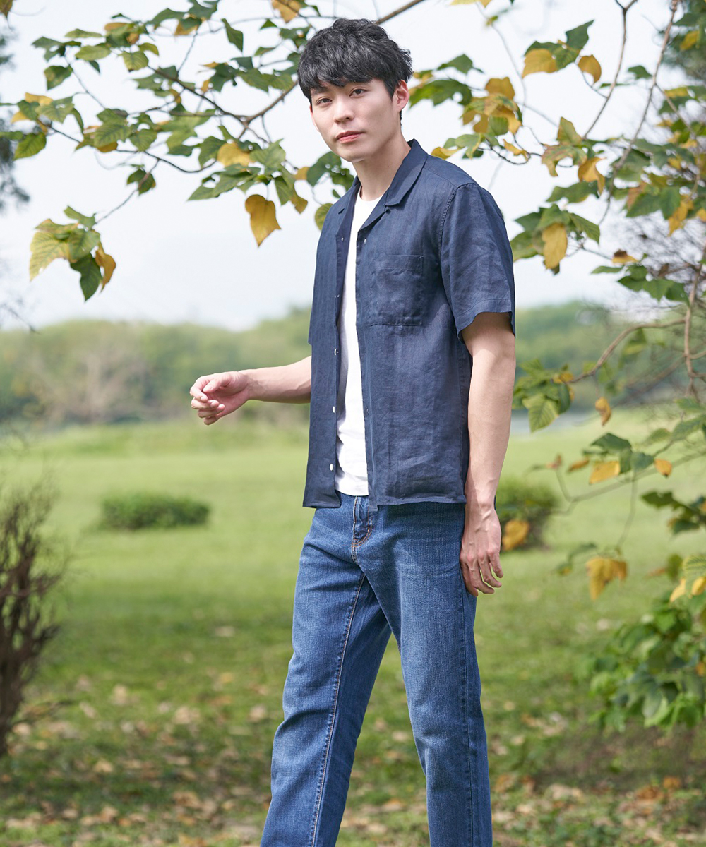 男法國亞麻水洗襯衫,799元:將亞麻的質地完整呈現,經水洗加工,觸感更加柔軟舒適。直線剪裁設計是其特點。