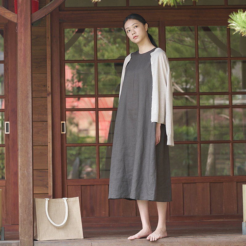 女法國亞麻水洗無袖洋裝,1,390元:將法國亞麻的質地完整呈現,經水洗加工,觸感更加柔軟舒適。親和肌膚,穿著感舒適是其特點。
