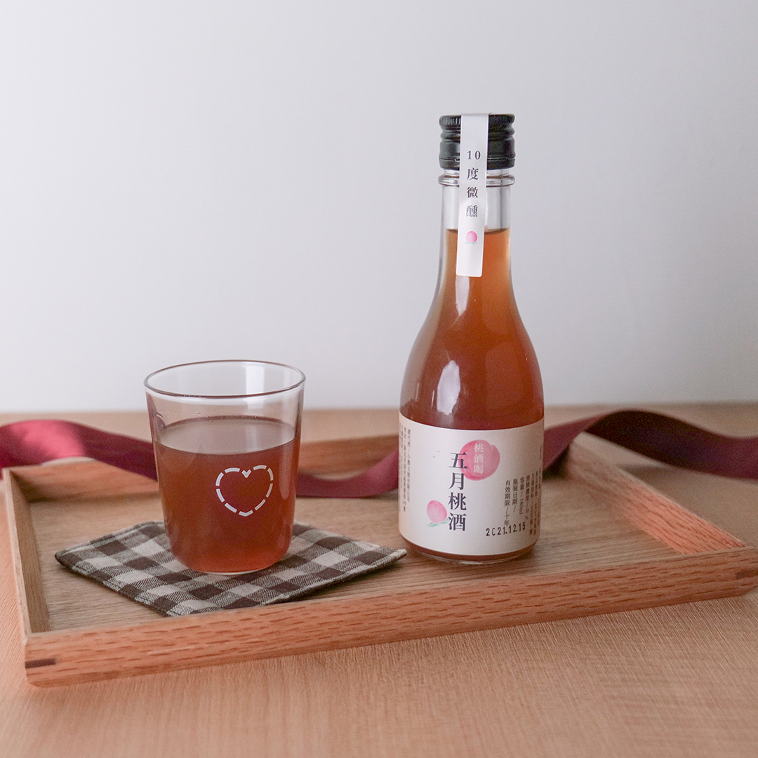 五月桃酒禮盒,699元:以再生玻璃杯盛裝產自復興鄉的桃酒,不添加任何人工香精,富含水果香氣。