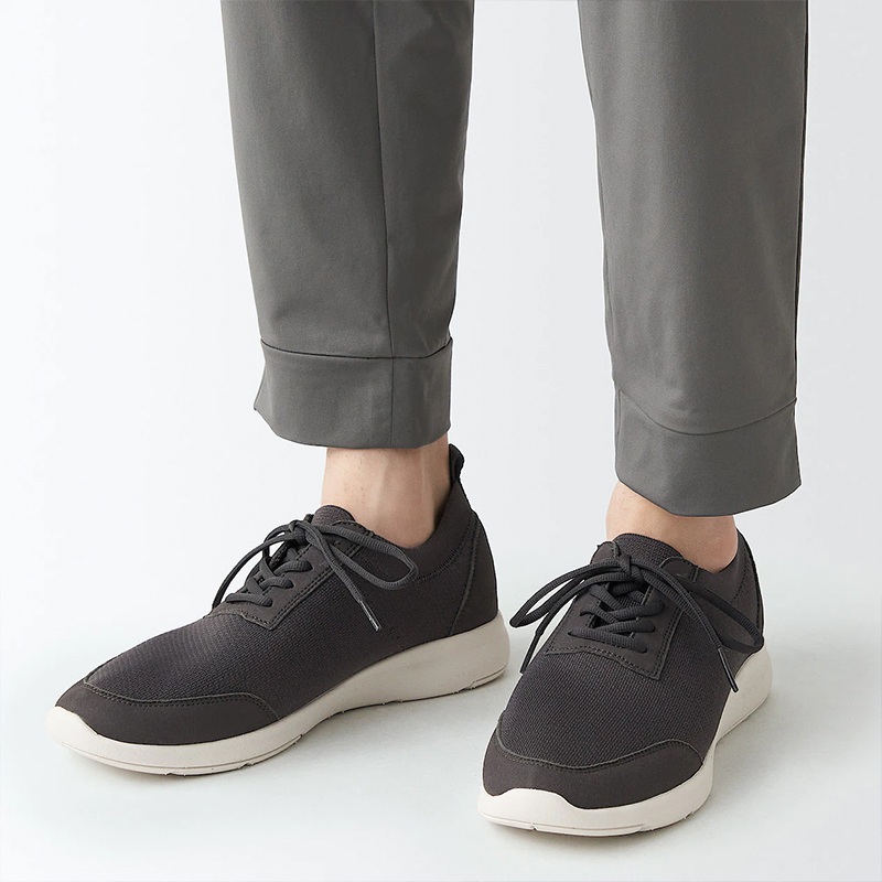 首先,在運動服飾的挑選上,MUJI無印良品發現許多顧客會穿著棉質T恤或採用帆布、丹寧材質製作的服飾運動,但這些素材多半不具吸濕排汗的功能,容易因出汗而加重衣物的重量,令身體感到黏膩與負擔。為提供顧客更好的運動體驗,MUJI無印良品新推出「MUJI WALKER」服飾–抗UV吸汗速乾聚酯纖維短袖T恤採用100%聚酯纖維製成,不僅吸汗更強調輕薄與速乾。若想在家嘗試重訓或跑跳動作,一雙室內專用的聚酯纖維足跟緩衝運動鞋,可吸收腳底衝擊,減輕腳部負擔。
