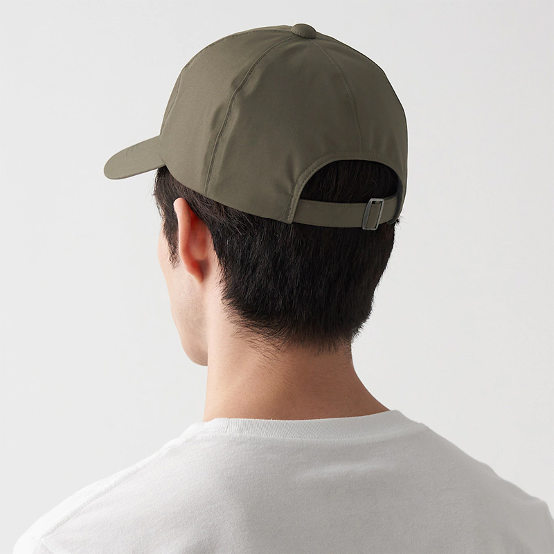 撥水加工附防水膠條棒球帽,599元:採用透氣撥水加工的素材。並加上可避免雨水滲透的防水膠條。使用有機棉製成。