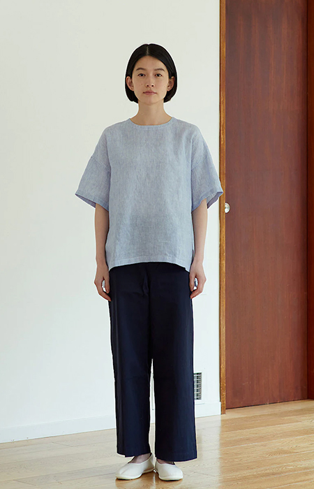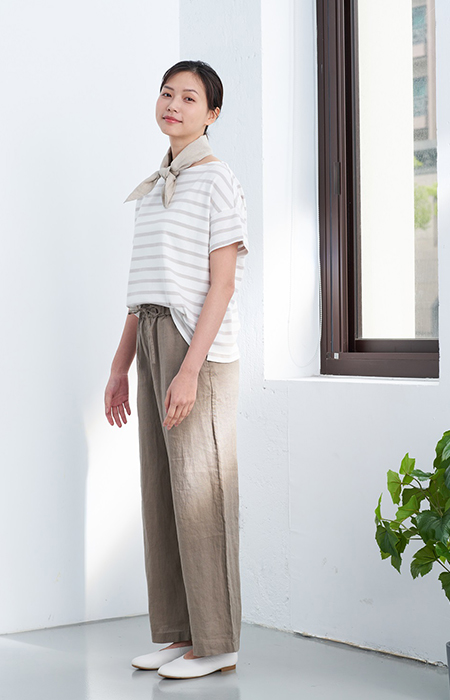 女法國亞麻水洗短袖套衫,890元:將法國亞麻的質地完整呈現,經水洗加工,觸感更加柔軟舒適。親和肌膚,穿著感舒適是其特點。