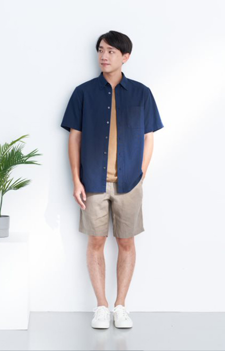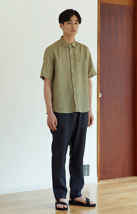 男法國亞麻水洗短袖襯衫,799元:將法國亞麻的質地完整呈現,經水洗加工,觸感更加柔軟舒適。直線剪裁設計是其特點。