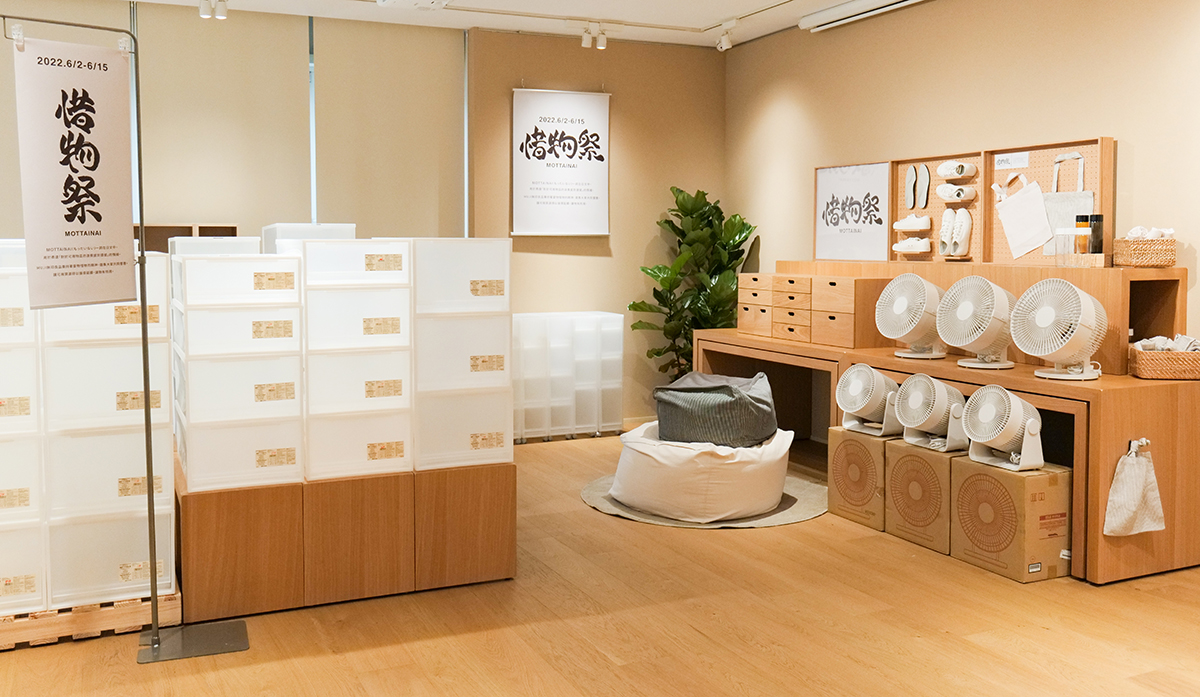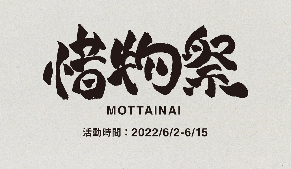 迎接即將到來的世界環境日,MUJI無印良品以珍惜物品的心意提出日文MOTTAINAI(もったいない)一詞,意指「對於可用物品的浪費而感到遺憾」的情緒,並以此為名,舉辦第一屆「惜物祭MOTTAINAI」,希望讓有些微瑕疵但不影響使用的各式商品能夠延續使用年限,不僅方便顧客可以用更實惠的價格購入所需用品,也能藉此降低浪費,令物有所用。
