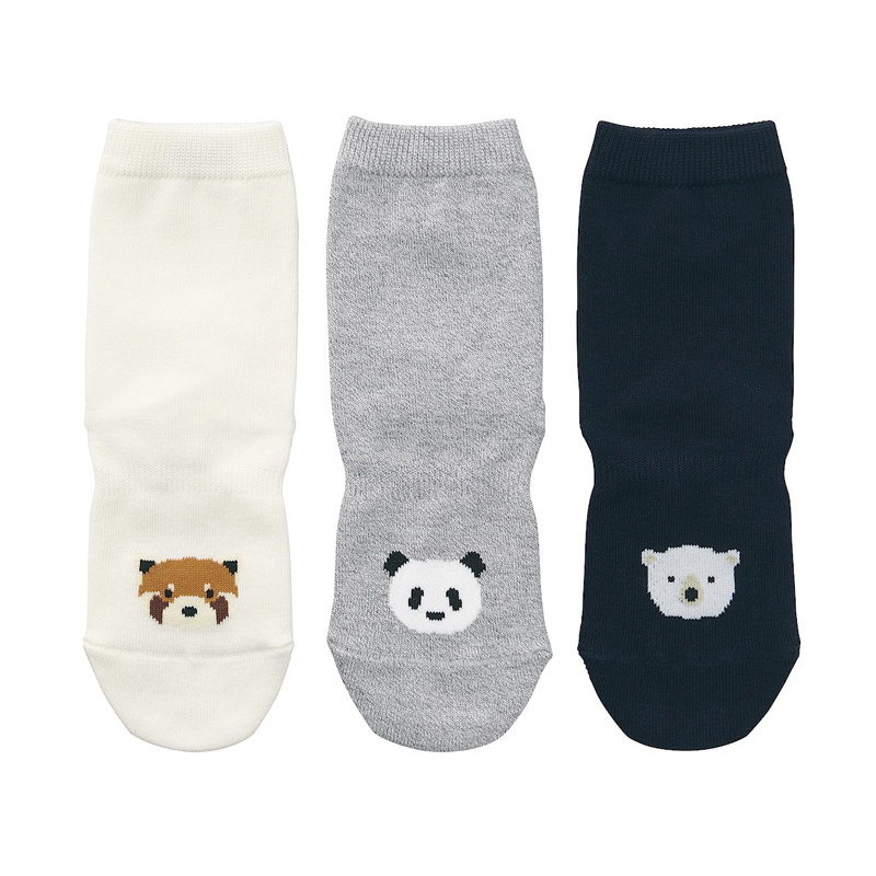 兒童棉混腳跟特殊編織動物紋樣直角襪三雙組(15-19cm),280元:將瀕臨絕種的動物印在腳背處,以做為穿著時的辨識記號。使用有機棉製成。