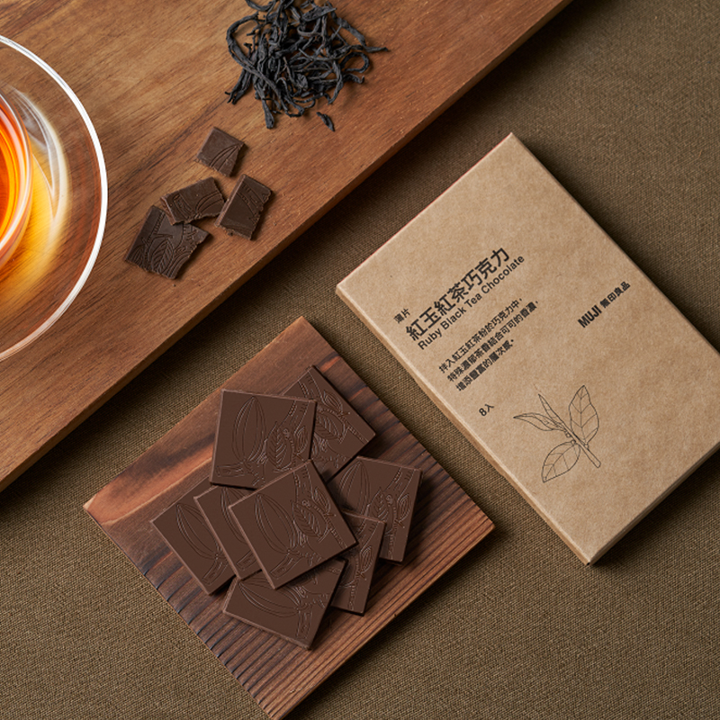 對於第一次在台灣開發生產巧克力新品,MUJI無印良品強調使用的皆為天然可可脂與可可豆製作的「調溫巧克力」,不僅外表較具光澤,質地也更硬脆且放在室溫下也不易融化,達到入口滑順,品質與香氣俱佳的特色。入冬後,適量的巧克力可補充熱量亦可滿足口腹之慾, MUJI無印良品一次推出三款「調溫巧克力」,其中72%黑巧克力含有較高的可可含量,除了帶有些微苦味外,入口也有微微的酸與甘甜,是一款十分適合成人食用的巧克力。而紅玉紅茶巧克力與鐵觀音巧克力則是將台灣紅玉紅茶粉及台灣鐵觀音茶粉與黑巧克力、白巧克力均勻混和後調溫而成,顧客可分別品嚐到紅玉紅茶或鐵觀音茶的清香,令入口更有層次。MUJI無印良品的薄片巧克力每片皆採獨立包裝,可分次取用,保持衛生的同時也方便顧客隨身攜帶,享受濃郁的巧克力香氣與滑順的口感。