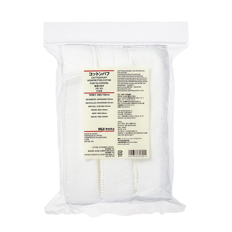 壓邊化妝棉/189入,79元:以觸感佳的嫘縈不織布包裹柔軟中綿,並於側面做收邊加工,不易變形。夾鍊袋包裝,保持清潔衛生。