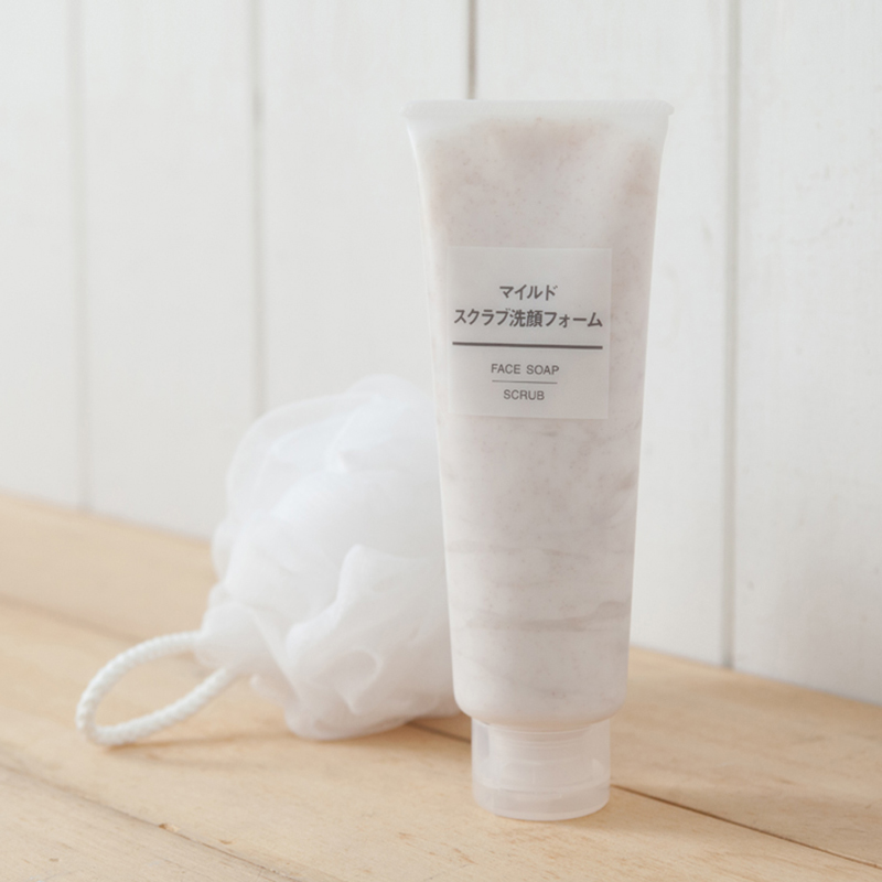 MUJI溫和去角質洗面乳,79-149元:含去角質成分蜜桃核,可徹底洗淨毛孔污垢及老廢角質,並添加金縷梅精華,達到緊緻效果。