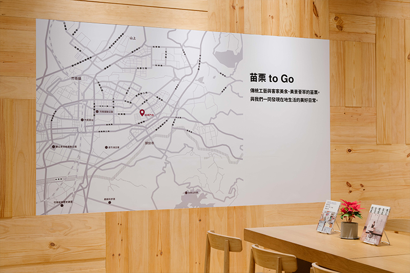 更進一步,MUJI無印良品希望尚順門市開幕後不僅是提供生活用品的空間,更能促進人與人的相互交流,因此在近15坪的「Open MUJI」空間內,規劃一處可以讓顧客休憩,同時也會不定期舉辦講座與手作活動的場域。一旁設置「苗栗to Go」地圖牆面,邀請大家推薦頭份附近的景點與活動。透過這些互動的規劃設計,MUJI無印良品希望讓更多顧客到訪門市時,更加認識苗栗的風俗人文與活動,與鄰里共享各式好感生活情報。