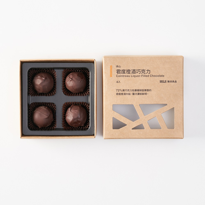 最甜蜜的聖誕贈禮當以巧克力居冠。MUJI無印良品特別在今年冬季開發三款夾心巧克力新品,其中兩款以酒精入味,強調成人獨享,分別是君度橙酒黑巧克力與高粱酒白巧克力,球型外表下使用兩種不同巧克力包覆內餡增加層次,酒香濃郁。另一款則為各年齡層皆適宜的榛果醬巧克力,外層覆蓋杏仁碎粒,口感扎實、香甜滑順。