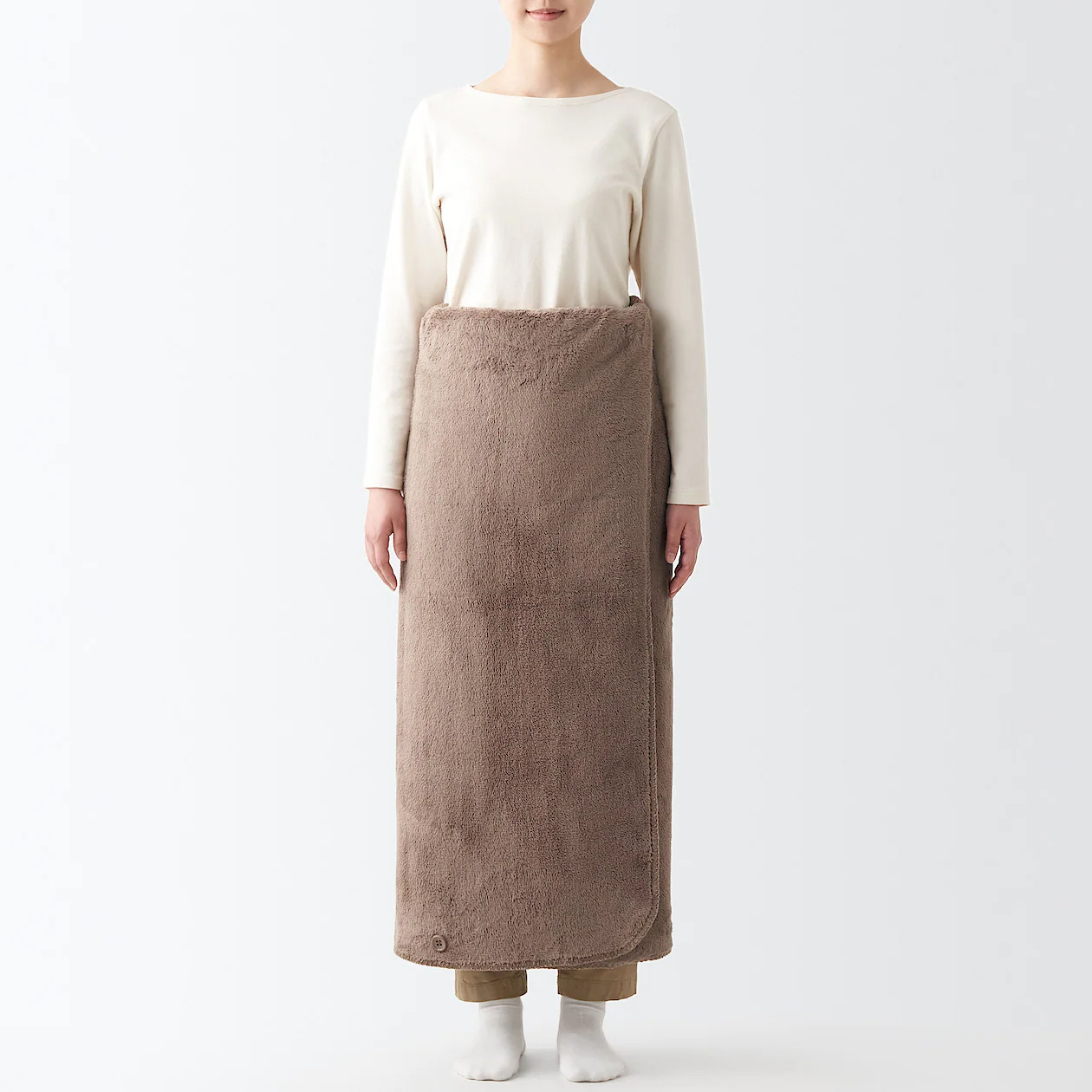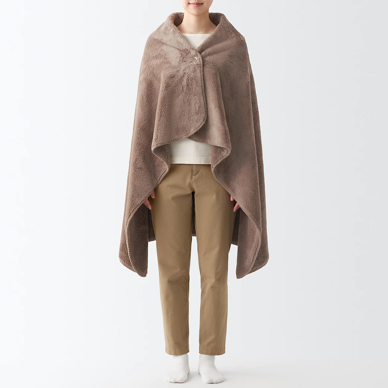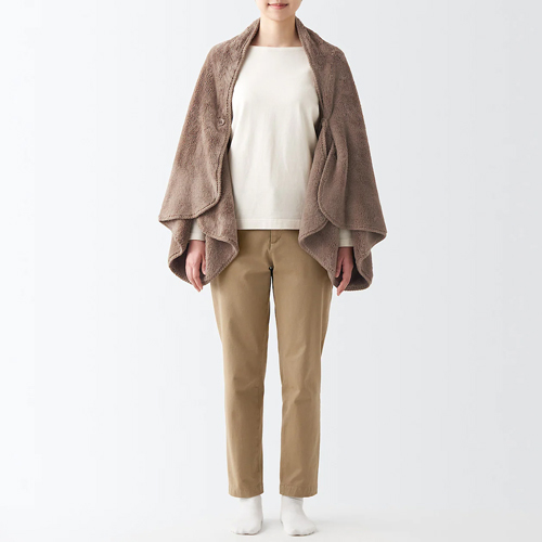 若擔心穿搭喜好的差異,不便為親友挑選服飾的顧客也可考慮選購一條保暖毛毯,MUJI無印良品推薦披肩式設計的暖纖毛厚手毛毯,不僅方便居家使用,也可置於辦公室,輕鬆應對室內外溫度變化。披肩式的暖纖毛厚手毛毯附鈕扣設計,也方便繫於腰、肩處。