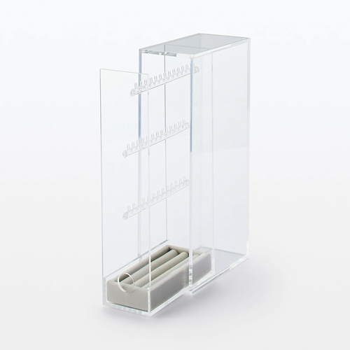 針對喜歡收藏飾品的親友,MUJI無印良品的壓克力項鍊耳環收納架可吊掛項鍊、耳環等飾品,搭配灰絨內盒,還能收納戒指等飾品。不易刮傷的壓克力材質,展現透明素材感,讓收納成為生活的風景。