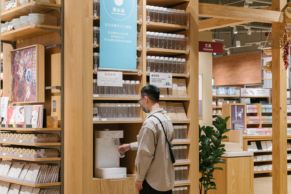 同時,為實踐友善環境、共享資源的理念,LaLaport台中店開幕後即展開「Re Park」服務,不僅設置「丹寧衣物再生箱」、「玻璃再生箱」、與「食物共享服務」,更首度發起「保養瓶罐再生箱」:邀請民眾將過往於MUJI無印良品購買,使用完畢的美容保養品瓶罐,清洗乾淨及乾燥後攜至門市回收,我們將交由長期深耕資源回收利用的「大豐環保」。經由回收、粉碎、造粒後成為可再利用的素材,再製成其他物品,發揮永續循環精神。「食物共享服務」邀請顧客分享家中仍在效期內且包裝完整的食品,透過合作「家扶基金會南台中家扶中心」轉贈給需要的家庭,達到惜食與分享的共好理念。在丹寧衣物與玻璃再生的部分,則攜手「木匠的家」關懷協會與「春池玻璃|春室」,將可用資源經過職人設計與巧思後,重新製作為嶄新商品,實踐循環經濟的同時,也與民眾共同實踐惜物愛物的善意。