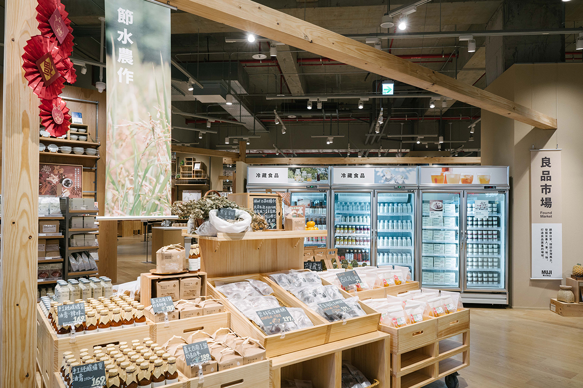 作為大台中的第七家新開店,MUJI無印良品LaLaport台中店緊鄰建國市場,為提供顧客對於飲食更加豐富的選擇,LaLaport台中店特別以「食育良方」為主要推廣概念,規畫台中最大45坪的「良品市場」,販售在台灣開發生產的食農商品,像是採用台中大雅的小麥釀製的小麥啤酒、冷壓果汁、台式火鍋湯底等,再加上MUJI無印良品選品系列-「FOUND FOOD」,包含養生茶飲、調味料與台灣特色食材點心等,總計近500支品項,希望與顧客分享台灣在地的優質農產。
