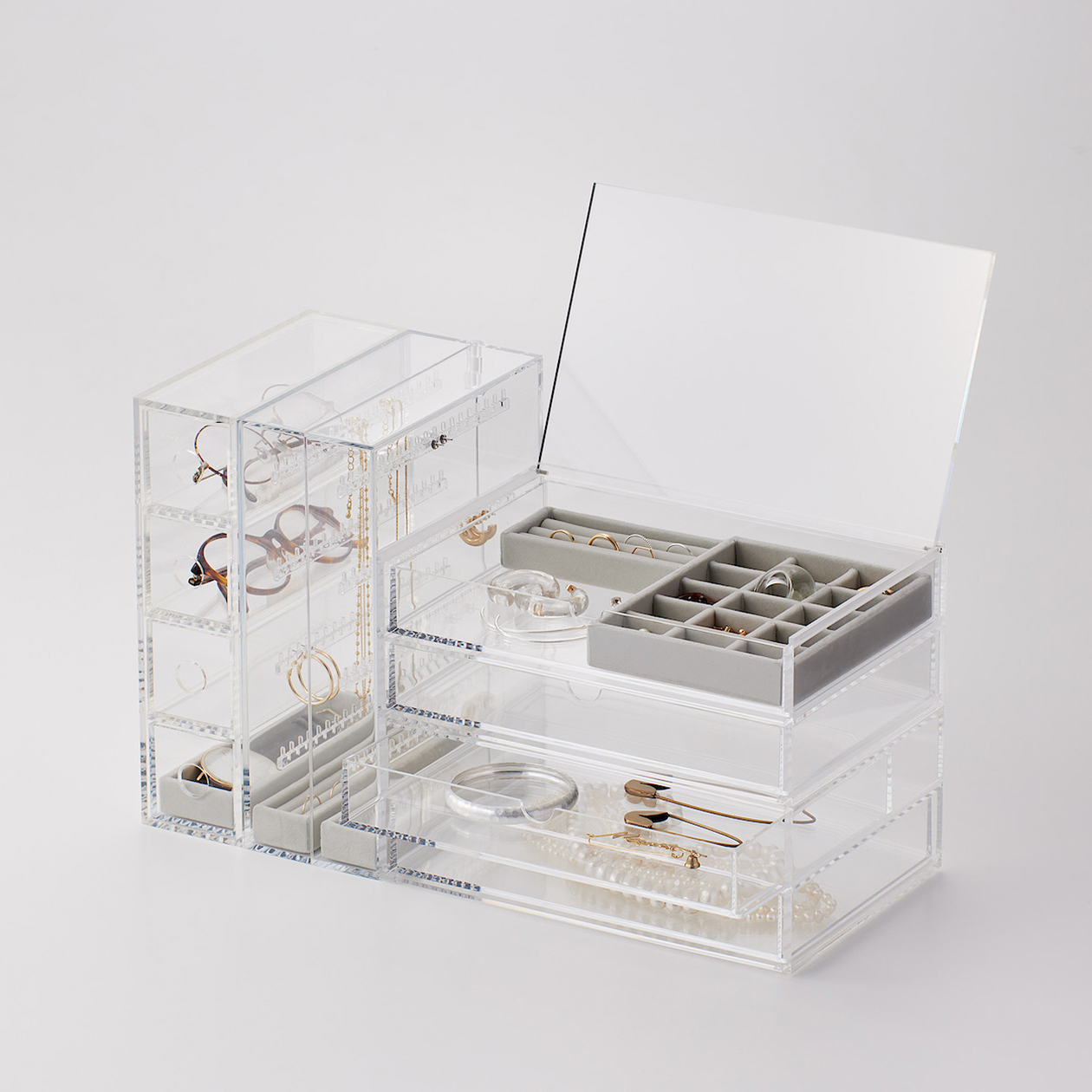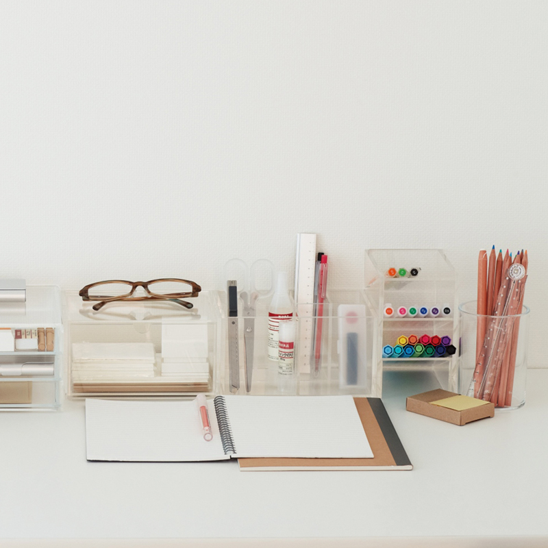 透明設計,可堆疊使用,將小物整齊收納,一目瞭然。
