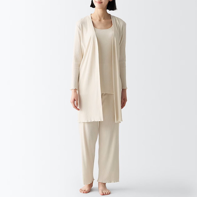 女柔滑螺紋家居睡衣(3月上市):使用尤加利樹的天絲棉素材混紡而成。柔滑的肌膚觸感 ,適合居家時光輕鬆穿著。售價790-990元。