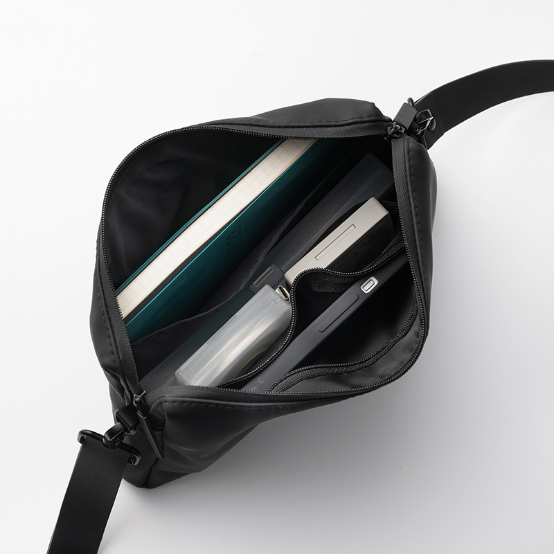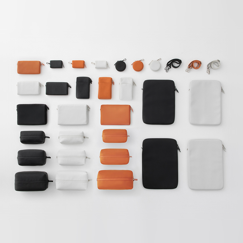 採用pu材質,手感柔軟舒適,不易沾水。可單獨當作一般收納包使用,收納日常小物。每款皆有扣環,可搭配掛繩組合出不同組合的收納包外出使用。共3色,白、黑、橘及9種款式。預計售價150元起。