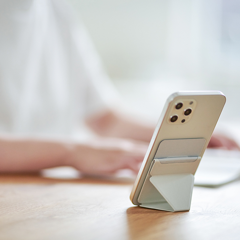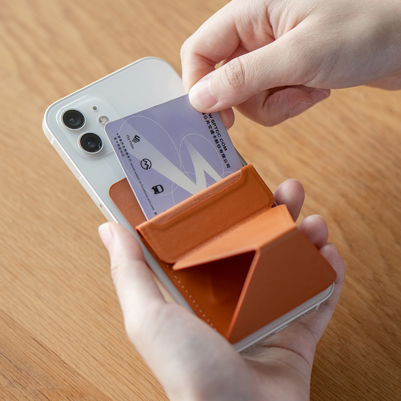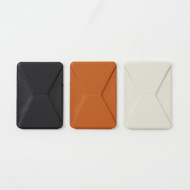 擴充手機相關配件品項,提供橫豎兩種支撐模式且皆可收納卡片。素材來源是使用蘋果榨汁之後的殘渣與樹脂混合製成的合成皮革。共有白、黑、橘3色,預計售價399元。