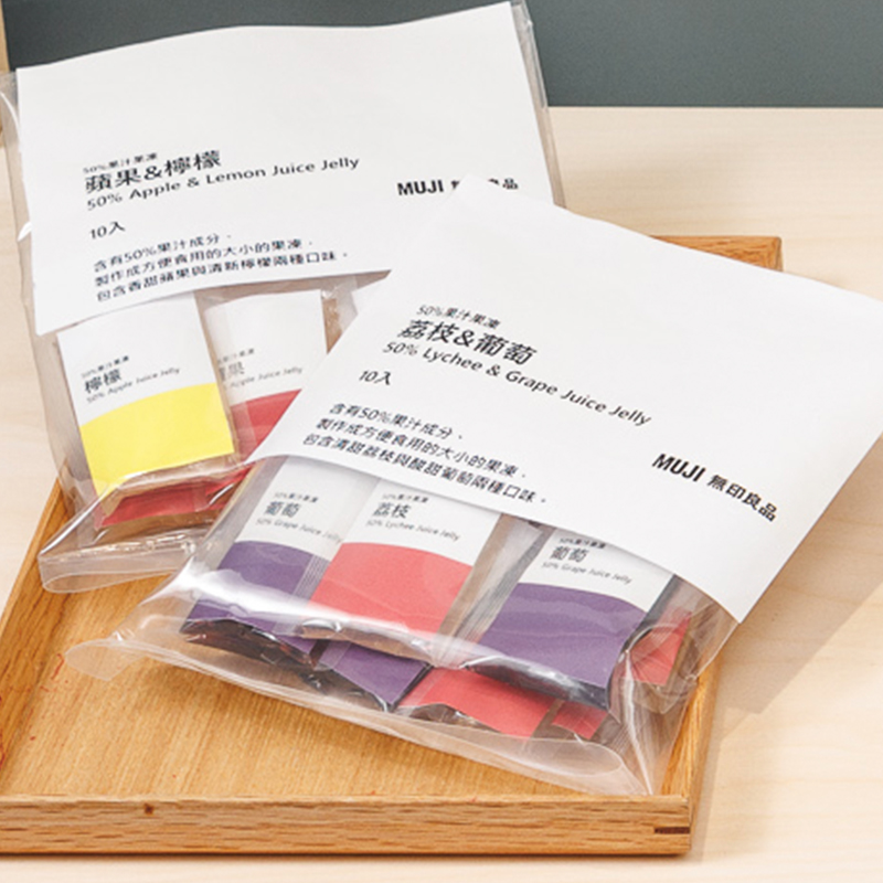 進入盛夏後,MUJI無印良品計畫推出兩款消暑的果汁果凍新品:荔枝&葡萄、蘋果&檸檬,一袋綜合兩種口味,可常溫吃,亦可冷藏或冷凍後享用。售價未定。