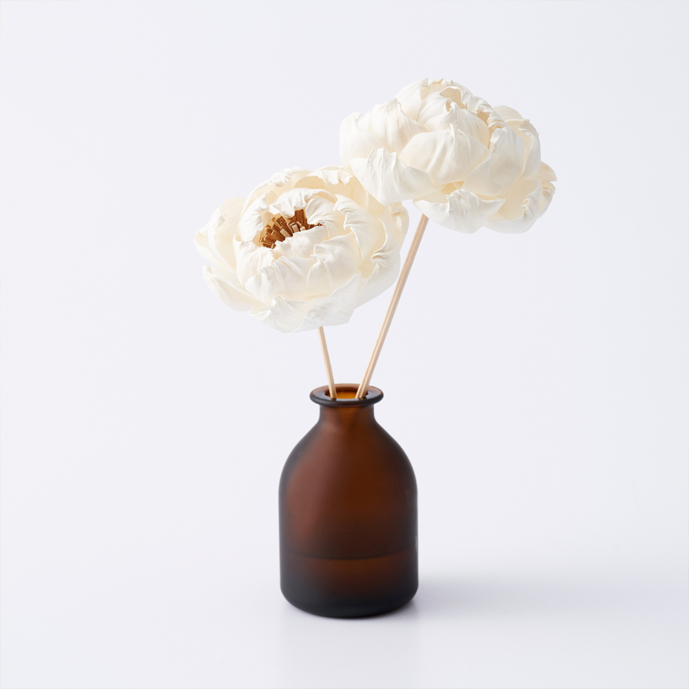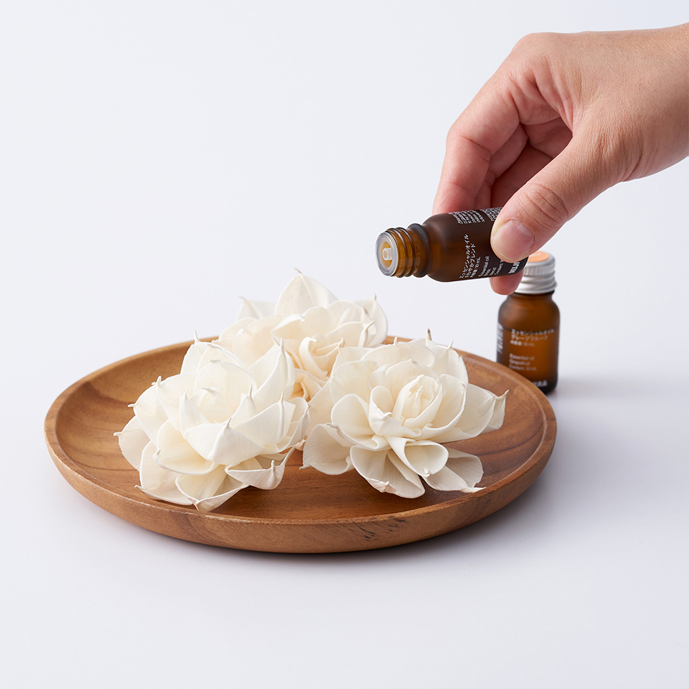 aspera)是原生於泰國的一年生草本植物,因可大量吸收二氧化碳,友善栽培環境,因此MUJI無印良品特別使用原生於泰國的索拉草,經乾燥、旋切、輾壓後裁切為紙片狀,以手工方式做成各款花朵形狀。由於索拉花本身沒有味道,且會吸收精油再揮發至空氣中,因此未來將成為門市販售的擴香道具之一,售價390-490元。