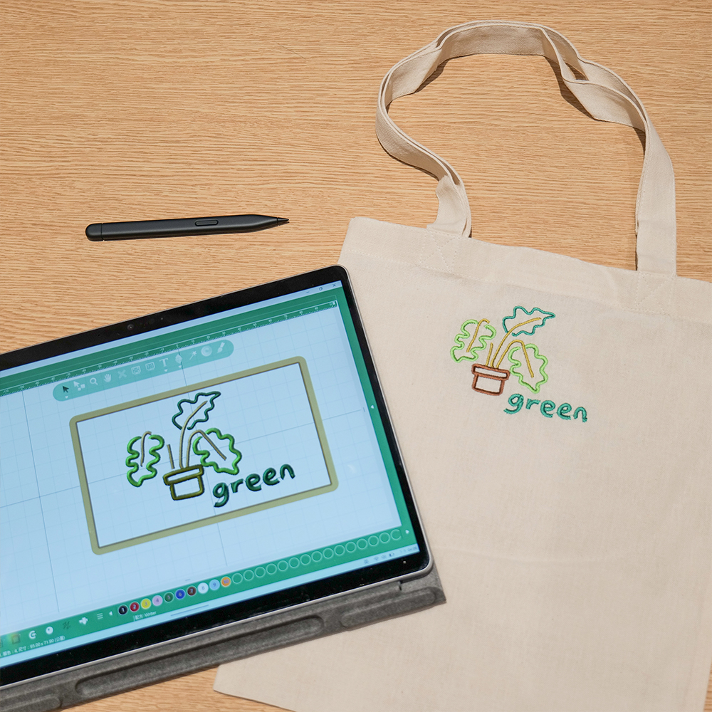 顧客不僅可以指定喜歡的刺繡圖案,還可使用門市提供的平板裝置自行手繪圖案,並且輸出於選擇的布件上,成為獨一無二的專屬刺繡,同時也在過程中享受自行設計與配色的樂趣。