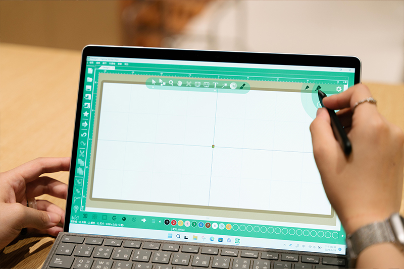 顧客不僅可以指定喜歡的刺繡圖案,還可使用門市提供的平板裝置自行手繪圖案,並輸出於選擇的布件上,成為獨一無二的專屬刺繡,享受自行設計與配色的樂趣。