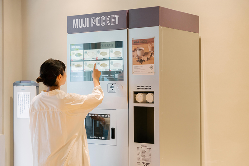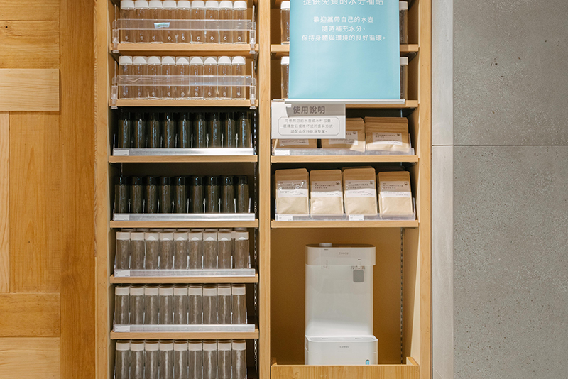 松高旗艦店除了設有免費飲水機,也引進「MUJI POCKET 」咖啡機,讓顧客在此閱讀或聊天時,也能方便快速地品嚐一杯飲品的愜意。在選書推薦上,嚴選包含生活風格、植栽花藝、飲食料理、設計美學與地方創生等主題的書籍,約3,500冊,希望透過文字與商品的結合,體會生活更多面向的思考。