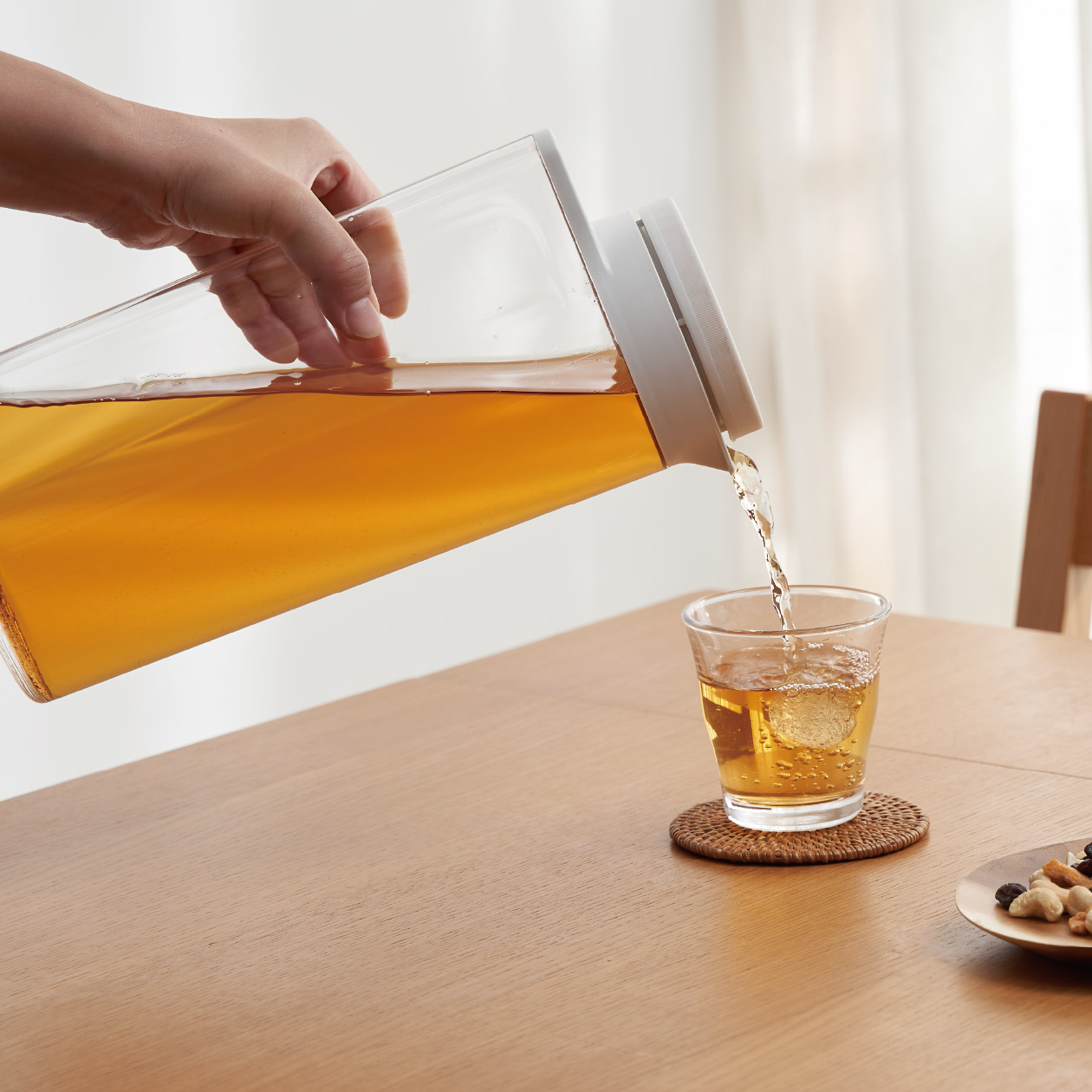 迎接夏至,近來天氣明顯轉熱,清涼的飲品不僅消暑,更可補充因流汗而失去的水份。MUJI無印良品建議顧客可依據自身體重與習慣,採少量多次的方式多多喝水,舉例來說,50公斤的人,一天可補充約1-2公升的飲水量。而MUJI無印良品熱銷的壓克力冷水筒正好符合容量需求,建議顧客可選擇在居家與辦公室各別放置1公升的壓克力冷水筒,不僅方便掌握攝水量,也可進一步利用多喝水來減少含糖飲料的攝取。