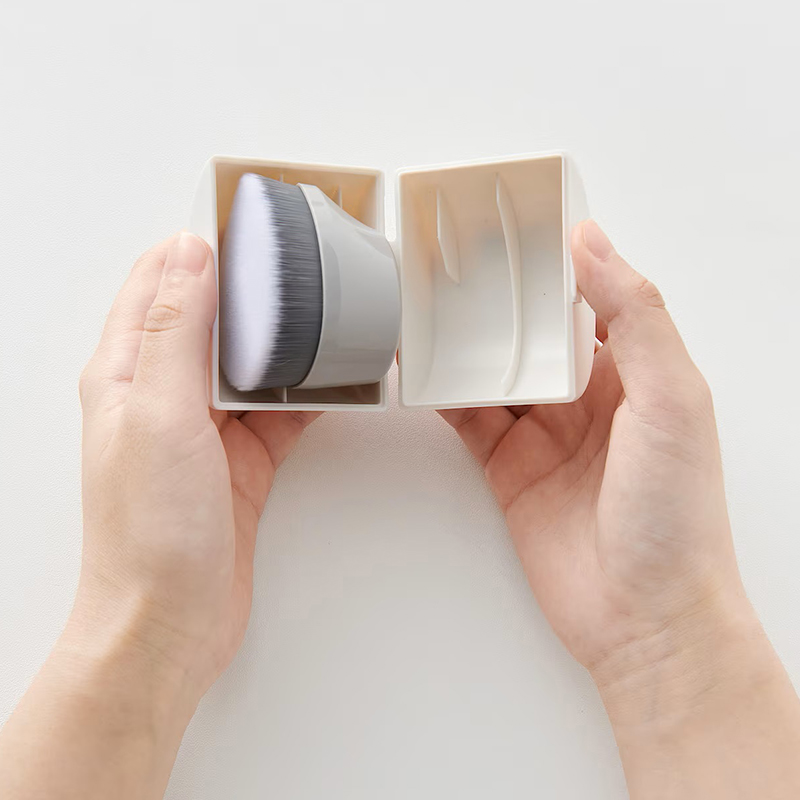 若是需要完成遮瑕力較高的精緻妝容,MUJI無印良品也推薦另一件新品粉底刷,相較使用3D化妝用海綿,粉底刷的妝感較重,強調可大面積快速上妝、立體設計容易握取,刷毛採用觸感柔軟的聚酯纖維製作,豐密細膩,降低刷痕產生。粉底刷配有收納盒,方便顧客隨身攜帶,保持刷具乾淨衛生。