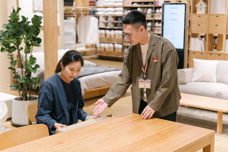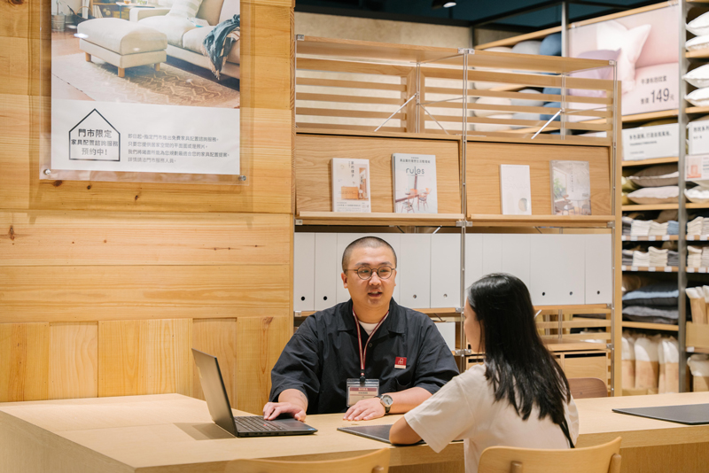 為協助顧客購買真正適合居家需求的家具與生活用品,MUJI無印良品自2013年起,即已開始推出「家具配置諮詢服務」,至今已邁入第十年,目前全台共有40間門市並配備40位經過認證核可的「家具配置顧問(IA,Interior Advisor)」在指定門市免費提供顧客空間諮詢的服務。顧客如果有空間規劃或家具選購疑問,或是對於該如何收納有相關需求問題,皆可至指定門市免費預約「家具配置諮詢服務」,由顧問針對需求提供解決方法。顧客可以攜帶空間相關圖面或尺寸圖或照片,與家具配置顧問透過一對一的當面討論,了解家中的生活習慣、生活動線設計及收納需求,量身打造客製化的理想生活空間。