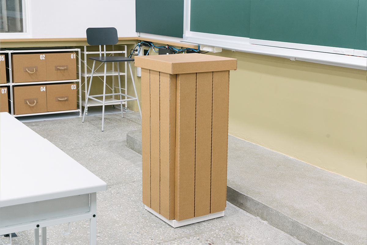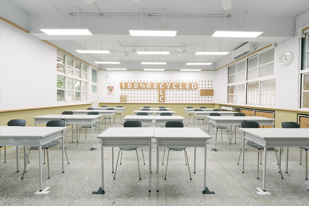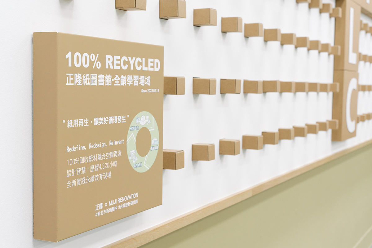補校課程讓樂齡族群有機會再度回到校園,MUJI RENOVATION 空間改造企劃團隊則是透過長達數月的觀察、蹲點及互動討論,思考高齡者的使用學習需求,設計出輕巧與適合長者乘坐穩定的課桌椅、並且將燈光重新設計得寬闊明亮,更與正隆研發團隊共同開發使用回收紙材的紙家具,以及輕巧容易搬動的講桌、以及打造個人學習的專屬收納紙盒、也將常使用的公布欄用自由組合的方式重新設計,並結合全新設計適合整理整頓的收納櫃。在這整個設計的過程中,優化的不只是一間教室,而是利用模組化重新整合教育學習空間,未來任何一個地方都可以快速複製成為學習的場域,打造共融友善的教育現場,讓樂齡永續學習有更舒適的享受;從教育空間場域使用的紙家具,也開啟了未來紙製商品更多創意可能性,目前正隆與KIMU柒木設計團隊共同合作,從生活用品概念出發結合收納、照明等需求,讓紙材經過設計成為有魅力的生活用品,更有利用價值,讓100%再生紙材在生活中永續循環使用,珍惜與友善地球環境資源。