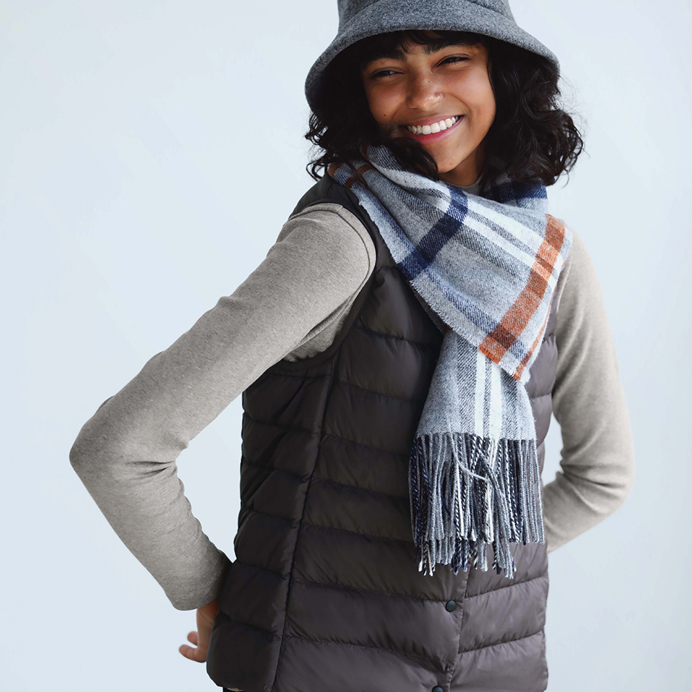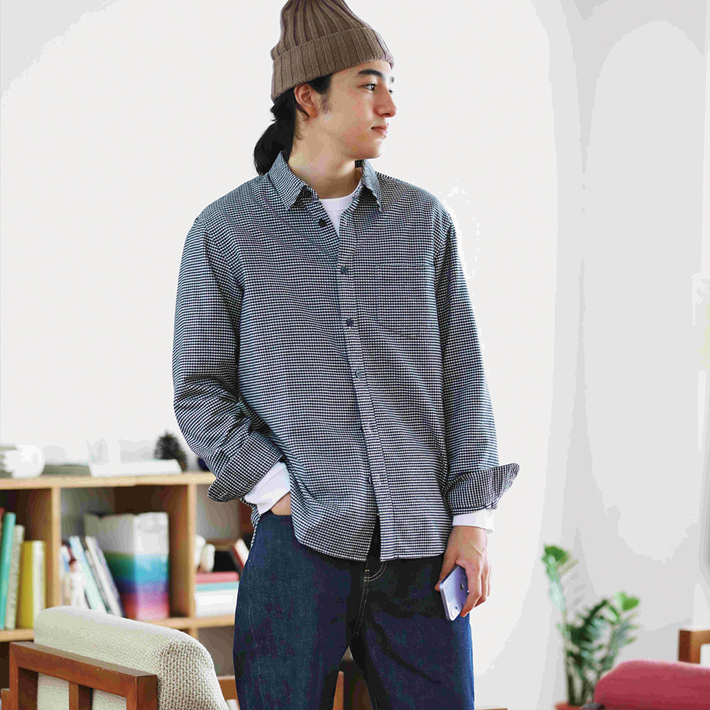 法蘭絨服飾向來是MUJI無印良品秋冬的主打商品。MUJI無印良品將起毛加工後的絨毛平整修剪,減少表面凹凸感,提升肌膚觸感更加柔軟與舒適。今年增加格紋款式的顏色組合,讓秋冬造型更加亮眼。女裝套衫的袖型設計更為圓弧也較寬,增加身形的修飾效果,突顯女性柔美體態。售價790-1,190元。