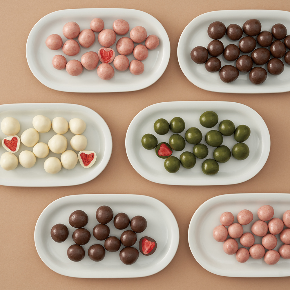 將過往自日本進口熱銷的可可含餡草莓轉為台灣在地生產,將台灣顧客的口味納入考量,降低甜度並增量,將不分大小的整顆草莓冷凍乾燥後,裹上風味可可,享受奶香濃郁與果香酸甜。售價119元。