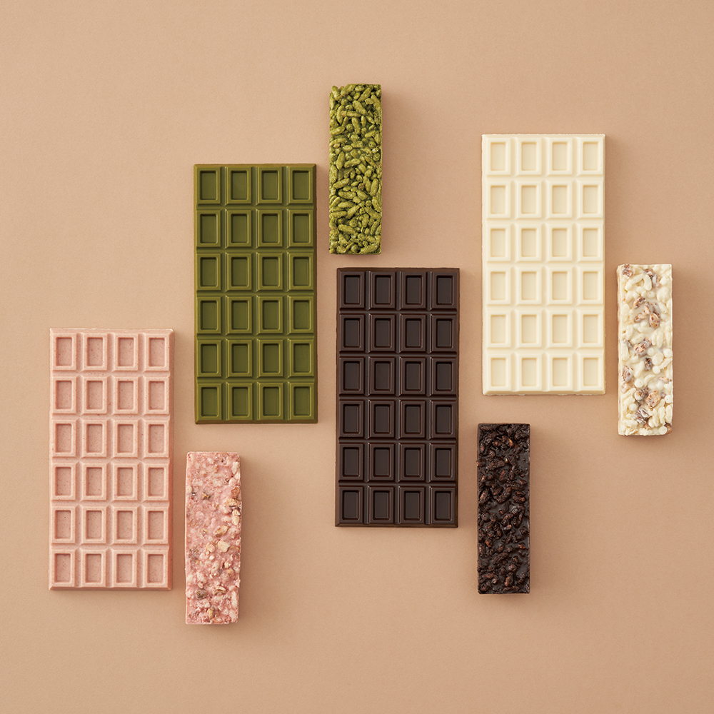 板型巧克力除了單吃,也可與蛋糕、餅乾、果乾及堅果等食材搭配,變化出多種創意吃法:例如搭配年輪蛋糕,依據喜好的配色與口味,發揮裝飾創意。或是隔水融化搭配棉花糖,在家就能DIY巧克鍋。另外也推出方便隨身攜帶巧克力米果棒,售價49-79元。