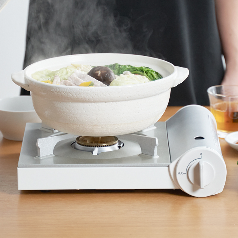 卡式爐,2,390-2,690元:爐體高度設計較低的卡式爐,造型簡約,共兩款尺寸可挑選,迷你款式較不佔桌上空間且可收納於另售的專用收納盒,方便攜帶。