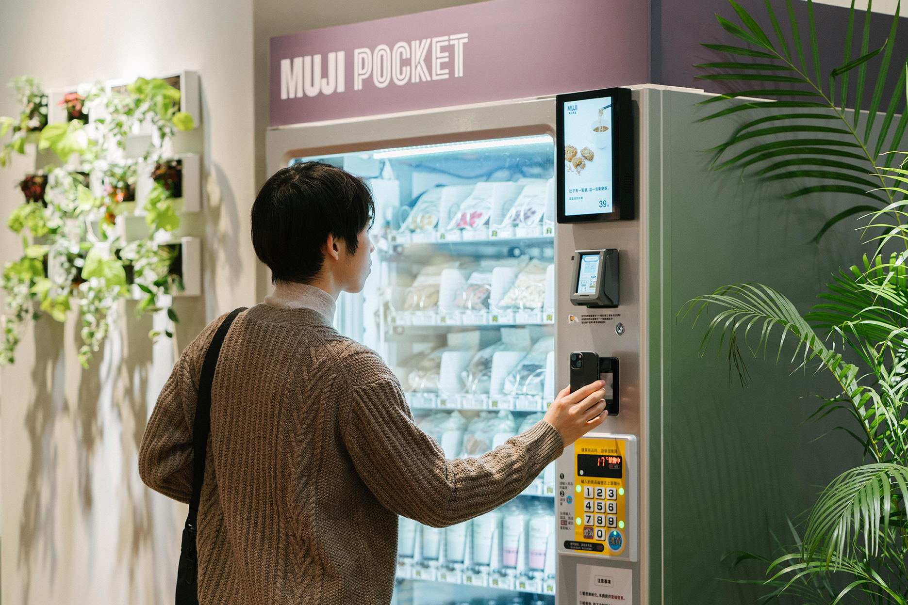 大立旗艦店除了設有免費飲水機,也引進「MUJI POCKET」自動販賣機服務,讓顧客在此購物時,可以更快速方便地補充水份及小包裝的點心零食,輕鬆享受遊逛樂趣。