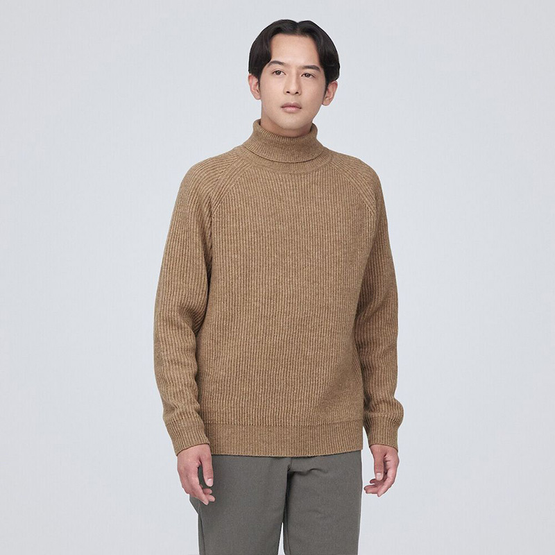 男羊毛混氂牛毛螺紋高領針織衫